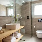 Flomis Luxury Villa 6 banyo odasında ayrı tuvalet, duş sağlamaktadır.